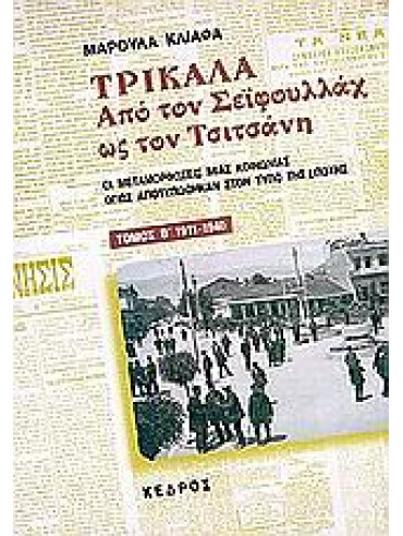 Ο δεύτερος αυτός τόμος, όπως και ο πρώτος, στηρίζεται σε στοιχεία που αντλήθηκαν από τις εφημερίδες της εποχής και διερευνά τους ίδιους βασικούς τομείς: πολιτική, κοινωνική ζωή, οικονομία και πολιτισμός. Συνεχίζεται η σκιαγράφηση της τρικαλινής κοινωνίας και η ανάδειξη των ιδιαίτερων χαρακτηριστικών της, έτσι ώστε να καταφανούν οι μεταμορφώσεις που υπέστη από την απελευθέρωση της Θεσσαλίας (1881) ως τις μέρες μας (1960).