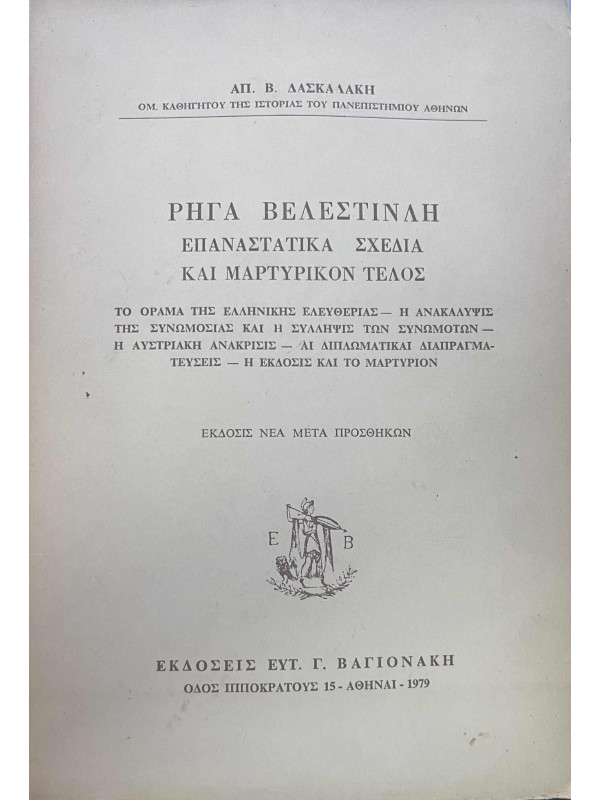 Δασκαλάκης Απ Β Ρήγα Βελεστινλή επαναστατικά σχέδια και μαρτυρικόν τέλος, Δασκαλάκης Β. Απόστολος Ρήγα Βελεστινλή επαναστατικά σχέδια και μαρτυρικόν τέλος, Δασκαλάκης Β. Απόστολος.. Product #: 9788888991498 Regular price: €30.00 €30.00 Σε απόθεμα