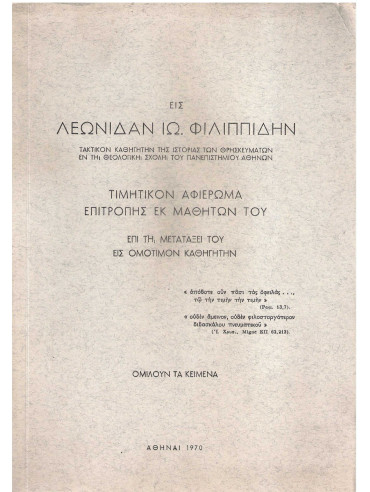 Εις Λεωνίδαν Ιω. Φιλιππίδην τιμητικόν αφιέρωμα - Επί τη μετατάξει του εις Ομότιμον Καθηγητήν