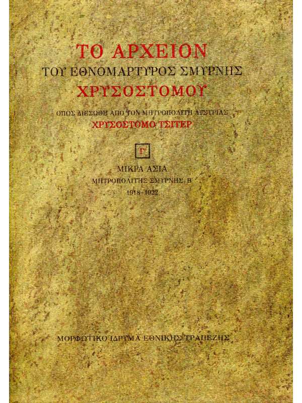 Το αρχείον του εθνομάρτυρος Σμύρνης Χρυσοστόμου (΄Γ τόμος)