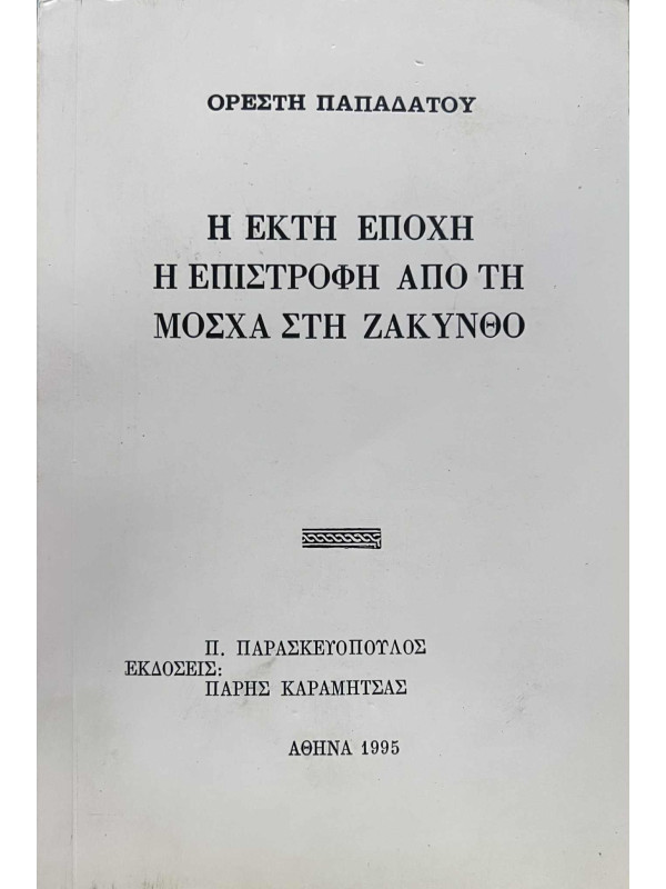 Παπαδάτος Ορέστης Η έκτη εποχή η επιστροφή από τη Μόσχα στη Ζάκυνθο, Παπαδάτος Ορέστης Η έκτη εποχή η επιστροφή από τη Μόσχα στη Ζάκυνθο, Παπαδάτος Ορέστης .. Product #: 9788888991351 Regular price: €20.00 €20.00 Σε απόθεμα