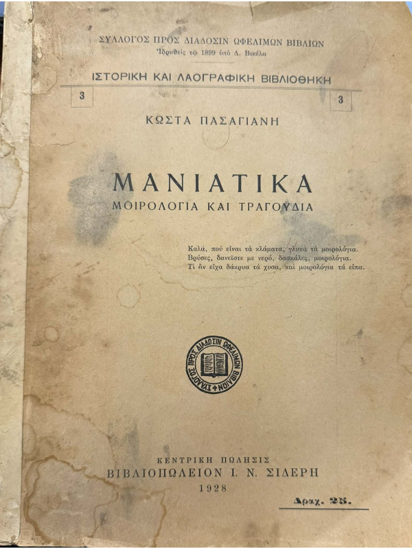 Πασαγιάννης Κώστας Μανιάτικα Μοιρολόγια και Τραγούδια, Κώστα Πασαγιάνη Μανιάτικα Μοιρολόγια και Τραγούδια, Κώστα Πασαγιάνη.. Product #: 9788888992594 Regular price: €40.00 €40.00 Σε απόθεμα