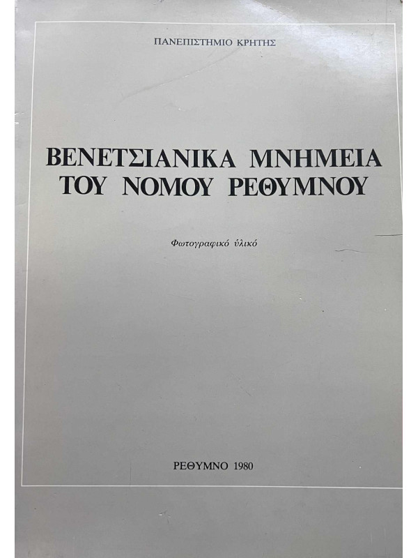 Βενετσιάνικα μνημεία του νομού Ρεθύμνου : φωτογραφικό υλικό Βενετσιάνικα μνημεία του νομού Ρεθύμνου : φωτογραφικό υλικό.. Product #: 9788888991153 Regular price: €20.00 €20.00 Σε απόθεμα