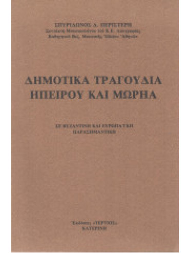 Περιστέρης Σπυρίδων Δ Δημοτικά τραγούδια Ηπείρου και Μωριά - Σε βυζαντινή και ευρωπαϊκή παρασημαντική, Περιστέρης Σπυρίδων Δημοτικά τραγούδια Ηπείρου και Μωριά - Σε βυζαντινή και ευρωπαϊκή παρασημαντική, Περιστέρης Σπυρίδων.. Product #: 9788888992754 Regular price: €25.00 €25.00 Σε απόθεμα