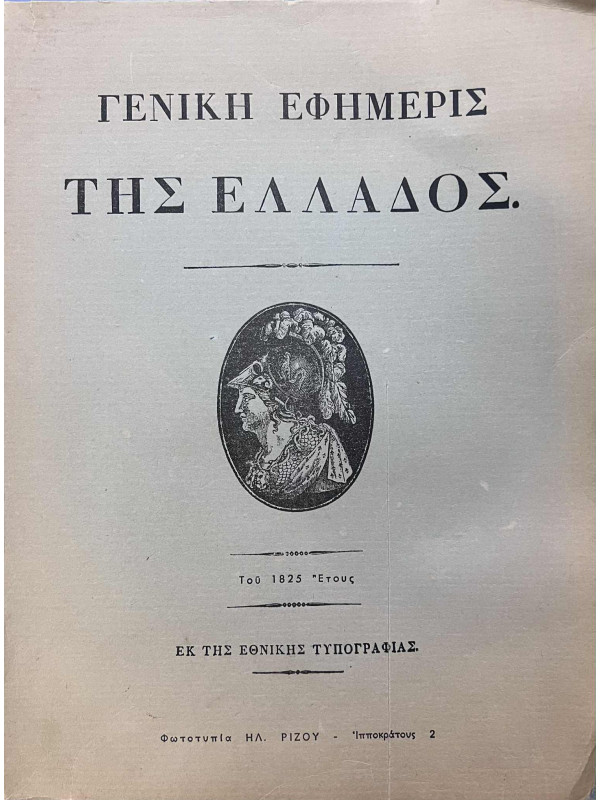 Γενική Εφημερίς της Ελλάδος του έτους 1825 Γενική Εφημερίς της Ελλάδος του έτους 1825.. Product #: 9788883863226 Regular price: €60.00 €60.00 Σε απόθεμα