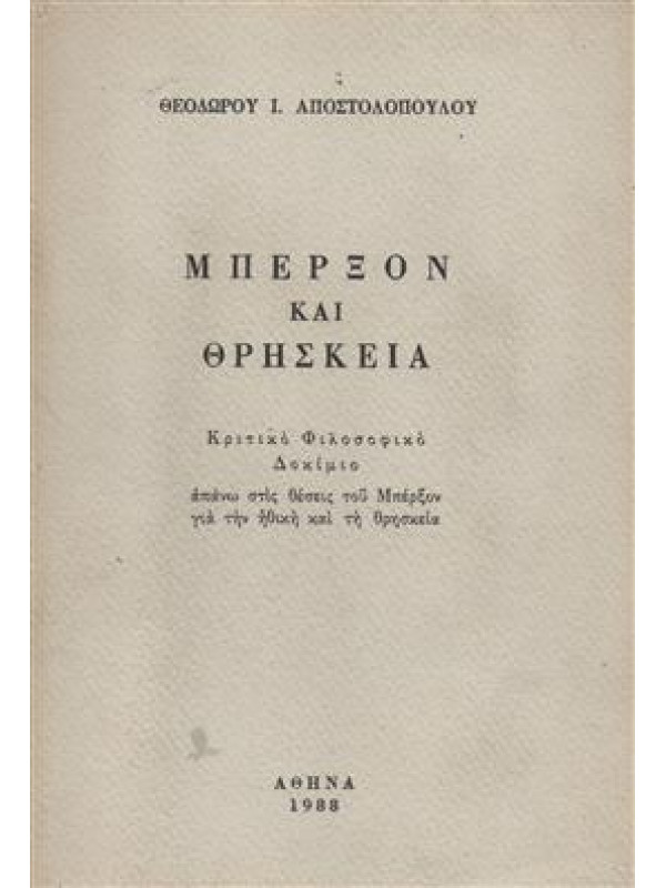 Αποστολόπουλος Θεοδωρος Μπέρξον και θρησκεία,Αποστολόπουλος Θεοδωρος Μπέρξον και θρησκεία.. Product #: 9788888917146 Regular price: €12.00 €12.00 Σε απόθεμα