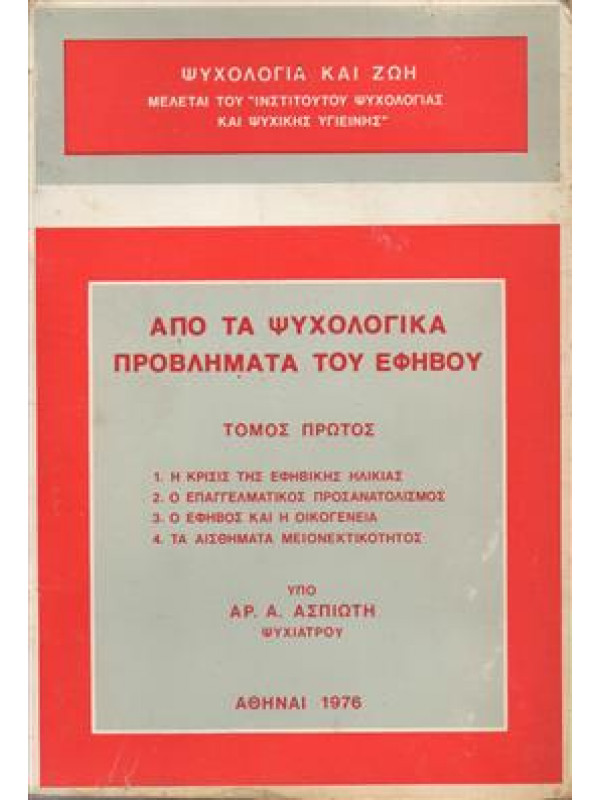 Ασπιώτης Αρ. Από τα ψυχολογικά προβλήματα του Εφήβου,Ασπιώτης Αρ. Από τα ψυχολογικά προβλήματα του Εφήβου.. Product #: 9788888915418 Regular price: €20.00 €20.00 Σε απόθεμα
