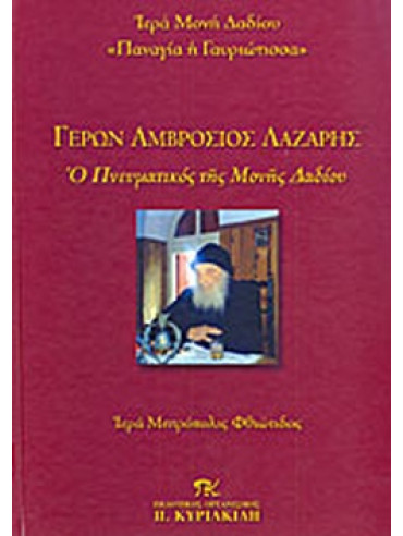 Ο Γέροντας Αμβρόσιος Λάζαρης, ο πνευματικός της Ιεράς Μονής Παναγίας της Γαυριώτισσας του Δαδίου, της καθ' ημάς Ιεράς Μητροπόλεως, ανήκει στις αγιασμένες εκείνες ιερατικές μορφές, για τις οποίες ομιλούν τα ιερά Συναξάρια της Εκκλησίας μας. Εφάμιλλος των μεγάλων συγχρόνων Γερόντων εκράτησε από την θέση της διακονίας του αναμμένη την δάδα της πνευματικής ζωής (. . .). Ο Γέροντας Αμβρόσιος δεν ήταν τυχαίος άνθρωπος. Μέσα στο γιγαντώδες σώμα του έκρυβε μια λεπτή παιδική ψυχή φλεγόμενη από θείο έρωτα. Η ενοίκιση του Παναγίου Πνεύματος στην ύπαρξή του τον κατέστησε χωρίον πολλών προσωπικών θαυμάτων και δέκτη θείων φωτοφανειών