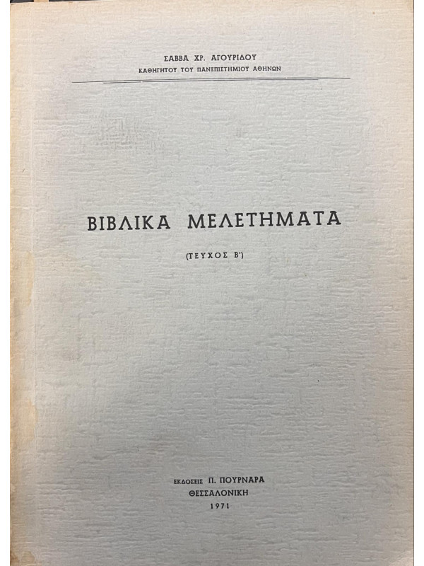 Αγουρίδης Σάββας Χ Βιβλικά μελετήματα (΄Β τόμος), Αγουρίδης Σάββας Χ. Βιβλικά μελετήματα (΄Β τόμος), Αγουρίδης Σάββας Χ.. Product #: 9788888981284 Regular price: €20.00 €20.00 Σε απόθεμα