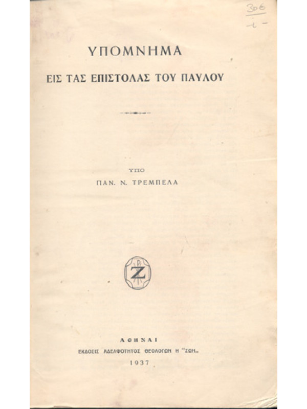 Τρεμπέλας Παναγιώτης Ν Υπόμνημα εις τας επιστολάς του Παύλου, Τρεμπέλας Παναγιώτης Ν. Υπόμνημα εις τας επιστολάς του Παύλου,Τρεμπέλας Παναγιώτης Ν... Product #: 9788888979687 Regular price: €25.00 €25.00 Σε απόθεμα