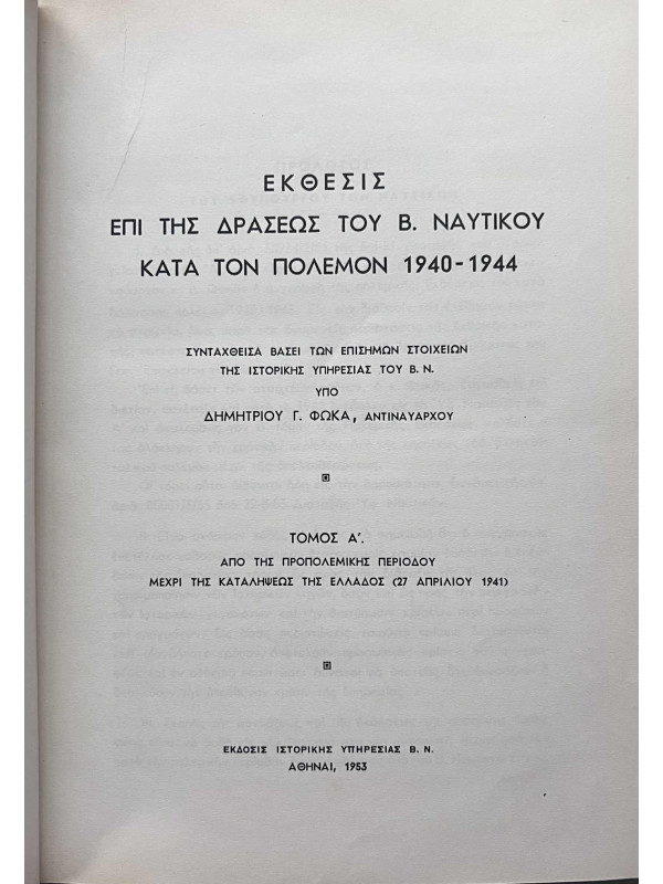 Έκθεσις επί της δράσεως του Β. Ναυτικού κατά τον πόλεμον 1940-1944 ( τόμος Α' )