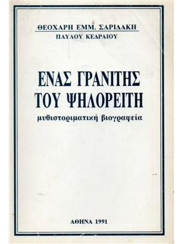 Σαριδάκης Θ.Ε. Ένας γρανίτης του ψηλορείτη,Σαριδάκης Θ.Ε. Ένας γρανίτης του ψηλορείτη.. Product #: 9788888890456 Regular price: €35.00 €35.00 Σε απόθεμα