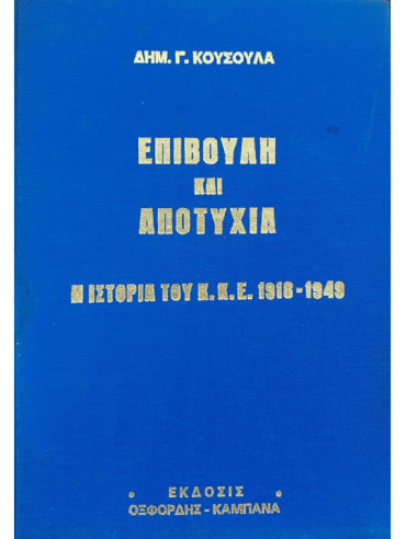 Κουσούλας Δημήτρης Γ. Επιβουλή και αποτυχία-Η ιστορία του Κ.Κ.Ε 1918-1940, Κούσουλας Δημήτριος Γ. Επιβουλή και αποτυχία-Η ιστορία του Κ.Κ.Ε 1918-1940, Κούσουλας Δημήτριος Γ... Product #: 9788888974743 Regular price: €30.00 €30.00 Σε απόθεμα