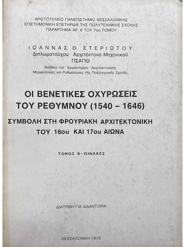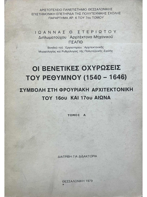 Τα δεδομένα αυτά συνετέλεσαν στο να επιλεγεί, ως θέμα έρευνας για διδακτορική διατριβή, η μελέτη των βενετικών οχυρώσεων του Ρεθύμνου για την περίοδο 1540-1646. Με την εργασία αυτή, αφ' ενός διερευνήθηκαν οι μορφές και οι αρχές χάραξης και κατασκευής των οχυρώσεων με προμαχώνες του 16ου και του 17ου αι. και αφ' ετέρου μελετήθηκαν, για πρώτη φορά ολοκληρωτικά, από ιστορική, μορφολογική και κατασκευαστική άποψη οι βενετικές οχυρώσεις του Ρεθύμνου.