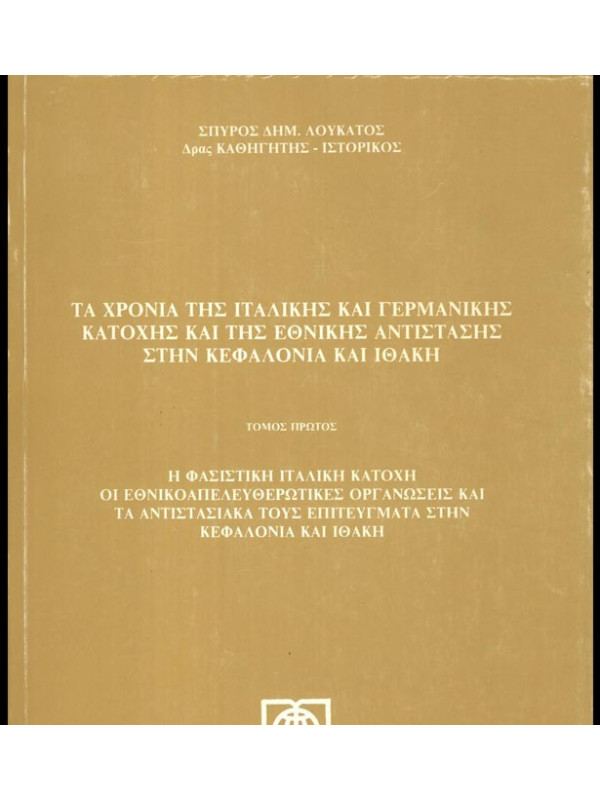 Τόμος Ά: Η φασιστική ιταλική κατοχή, οι εθνικοαπελευθερωτικές οργανώσεις και τα αντιστασιακά επιτεύγματα στην Κεφαλονιά και Ιθάκη